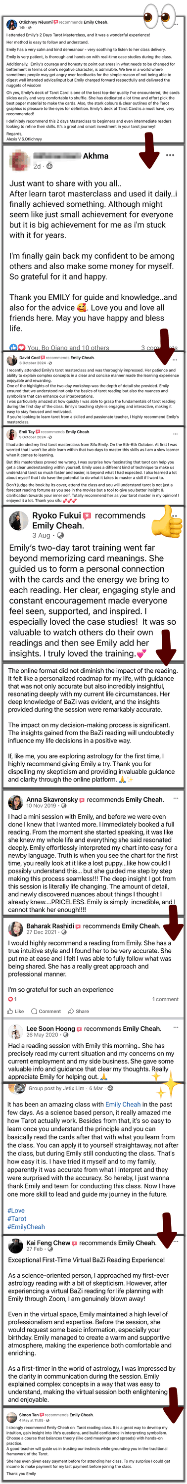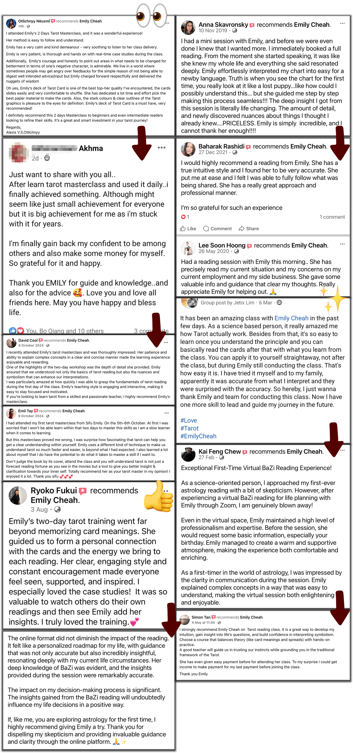 With over 13 years of experience, Emily Cheah has guided thousands of clients and students in 6 key areas of life: Health, Wealth, Career, Relationship, Character, and Mindset.